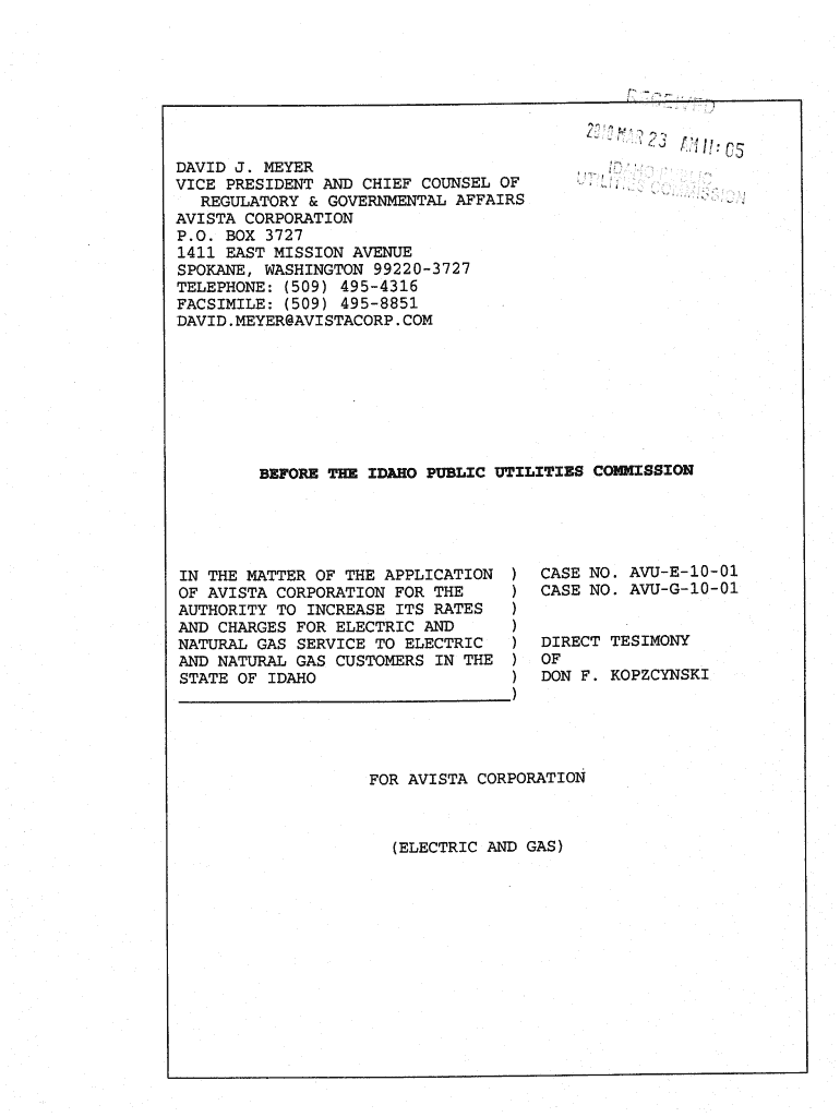 Get the free Avista - Washington Utilities and Transportation Commission
