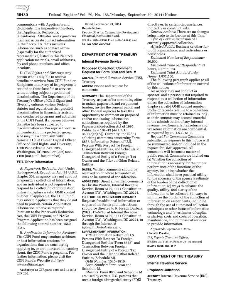 Get the free IRS Form 8858 and Schedule M