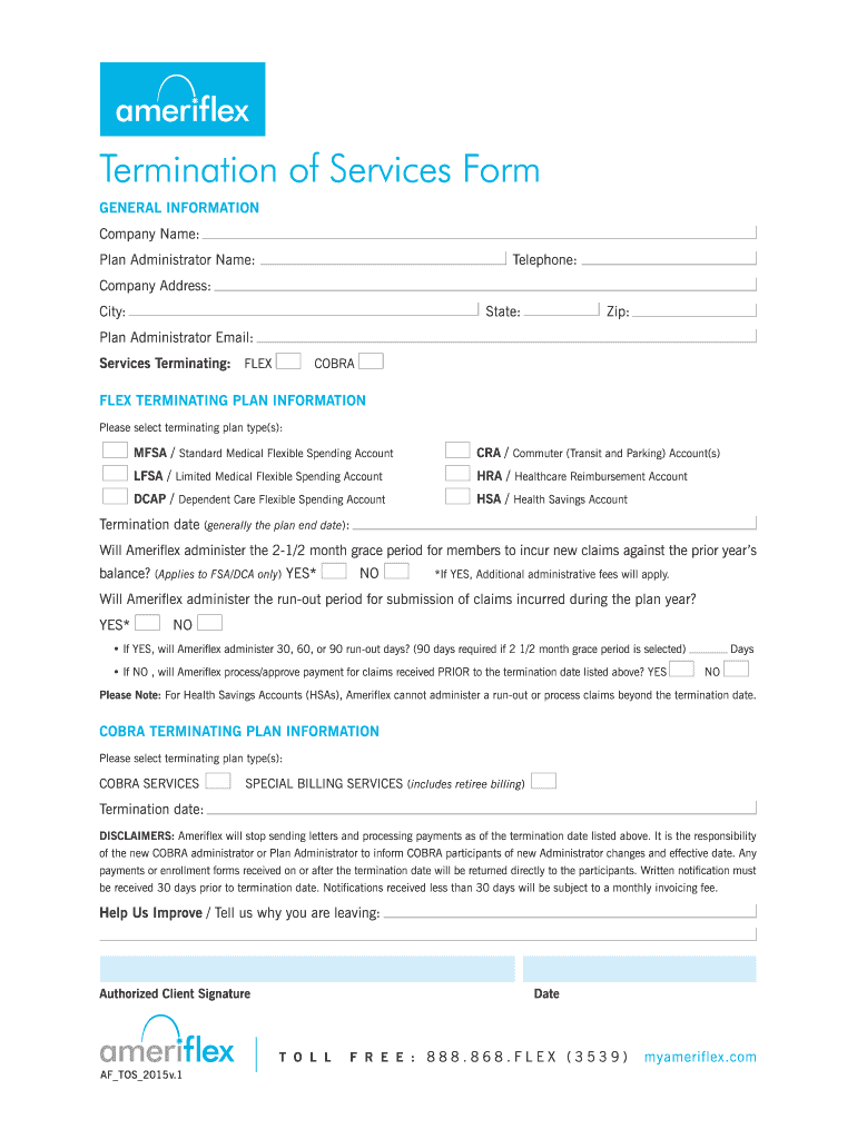 Get the free Termination of Services Form - myameriflex.net