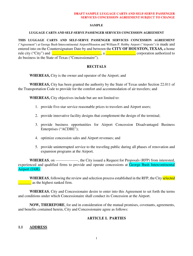 DRAFT SAMPLE LUGGAGE CARTS AND RESERVE PASSENGER SERVICES CONCESSION AGREEMENT SUBJECT TO CHANGE SAMPLE LUGGAGE CARTS AND RESERVE PASSENGER SERVICES CONCESSION AGREEMENT THIS LUGGAGE CARTS AND RESERVE