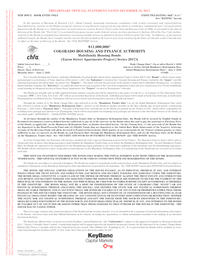Get the free Colorado Housing and Finance Authority. Multifamily Housing Bonds (Eaton Street Apar...