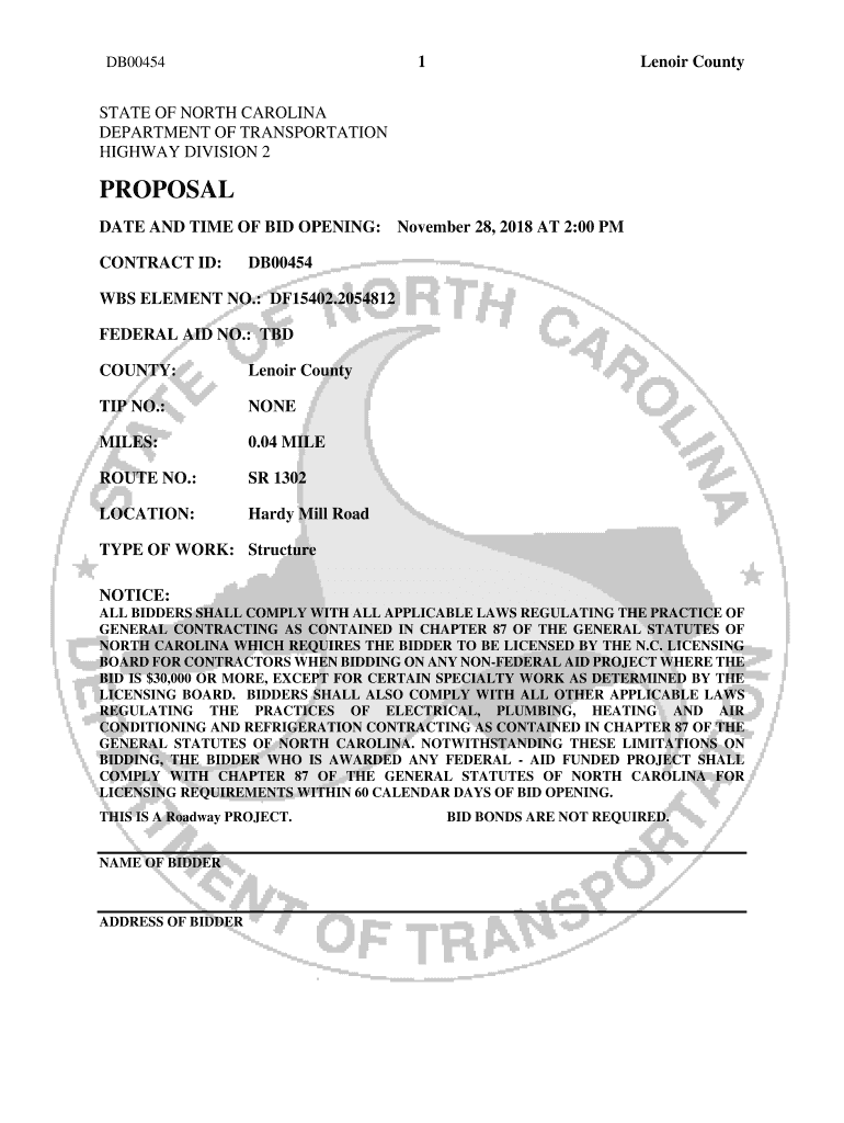 Get the free NCDOT-DIVISIONS: Proposal DD00259 - Bid Express