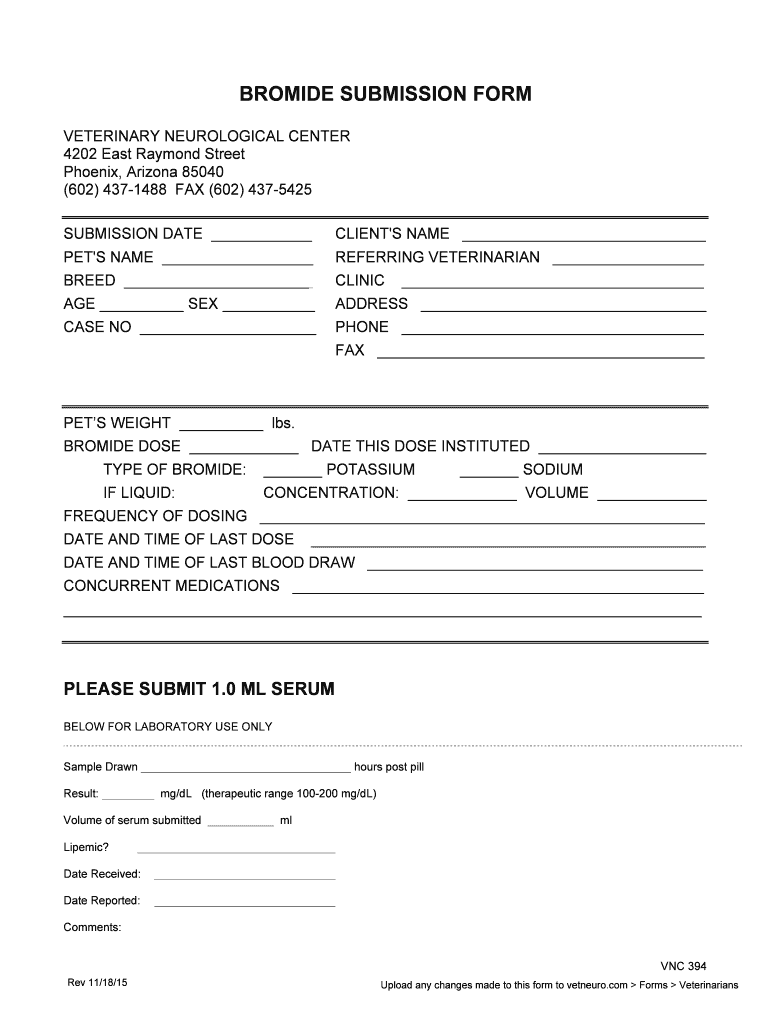 Get the free bromide submission form - Veterinary Neurological Center