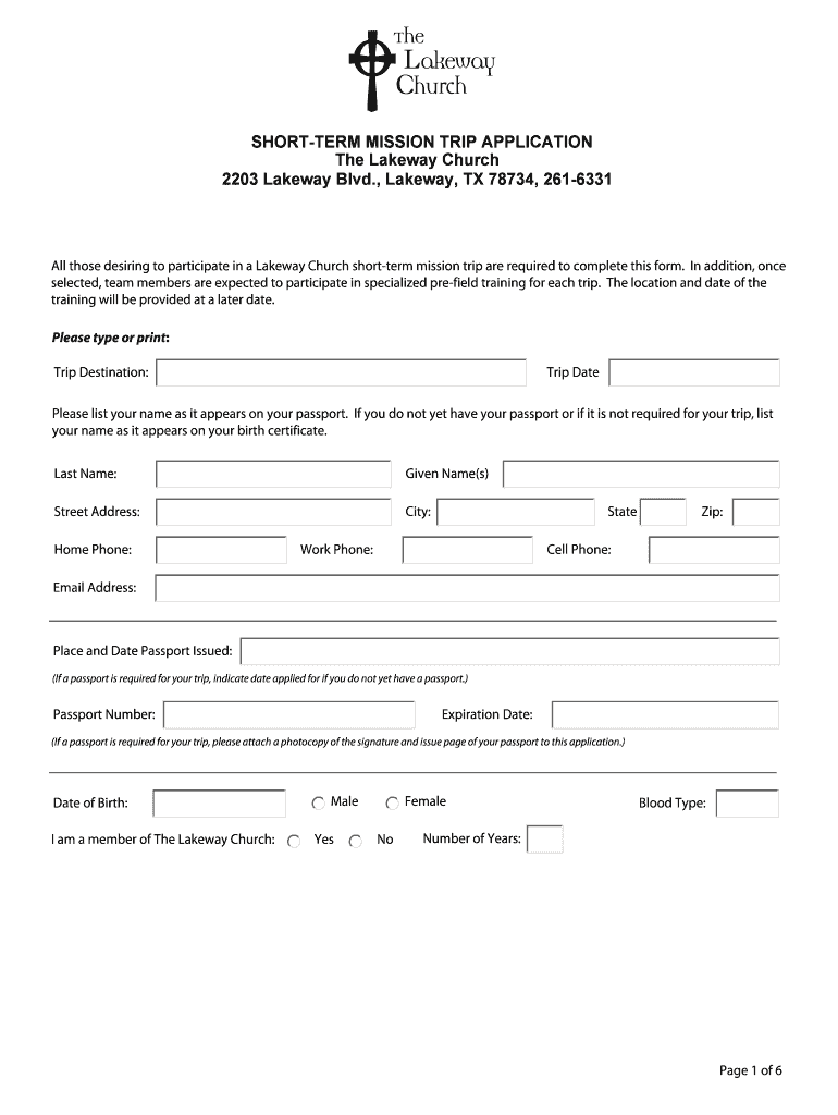 SHORTER MISSION TRIP APPLICATION