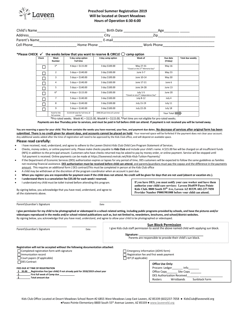 Get the free 2019 Preschool Summer Camp Registration Form - Laveen School ...
