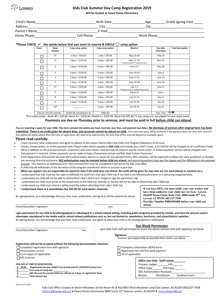 Get the free Kids Club Summer Day Camp Registration 2019 - Laveen School ...
