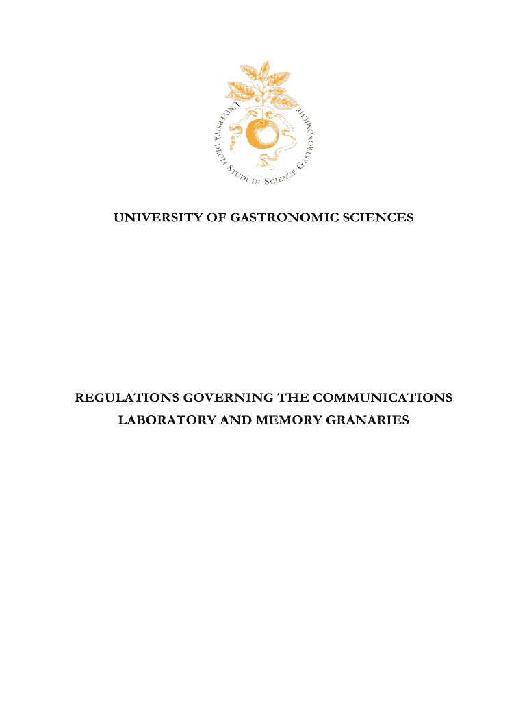 UNIVERSITY OF GASTRONOMIC SCIENCESREGULATIONS GOVERNING THE COMMUNICATIONS LABORATORY AND MEMORY GRANARIES Art. 1 Communications laboratory The University of Gastronomic Sciences provides a communications