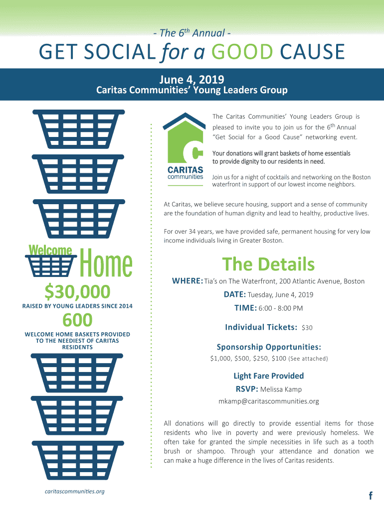 The 6th Annual GET SOCIAL for a GOOD CAUSE June 4, 2019Caritas Communities Young Leaders Group The Capital Communities Young Leaders Group is pleased to invite you to join us for the 6th Annual Get