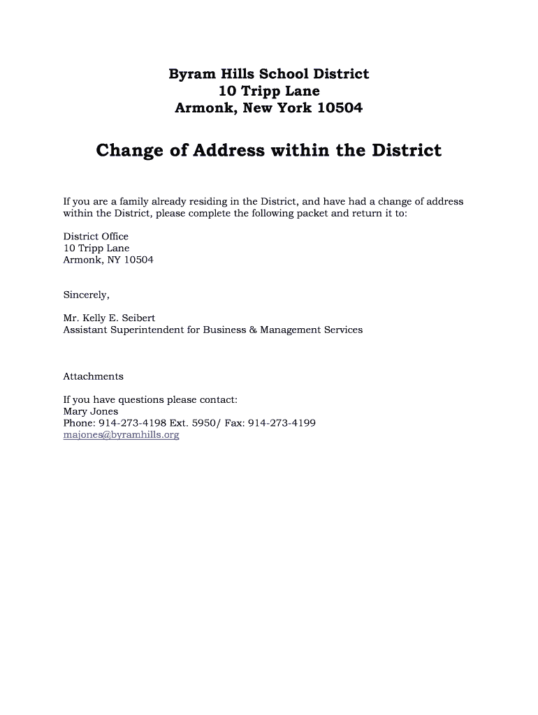 By ram Hills School District 10 Trip Lane Armonk, New York 10504Change of Address within the District If you are a family already residing in the District, and have had a change of address within