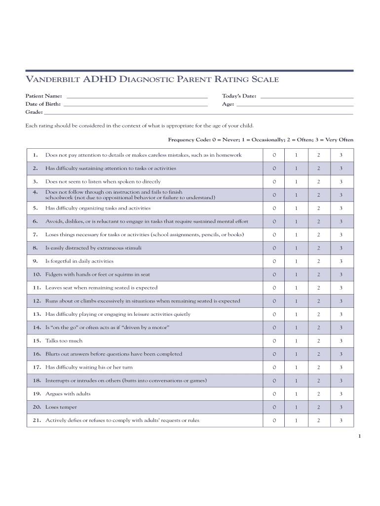 Get the free Vanderbilt ADHD Diagnostic Parent Rating Scale