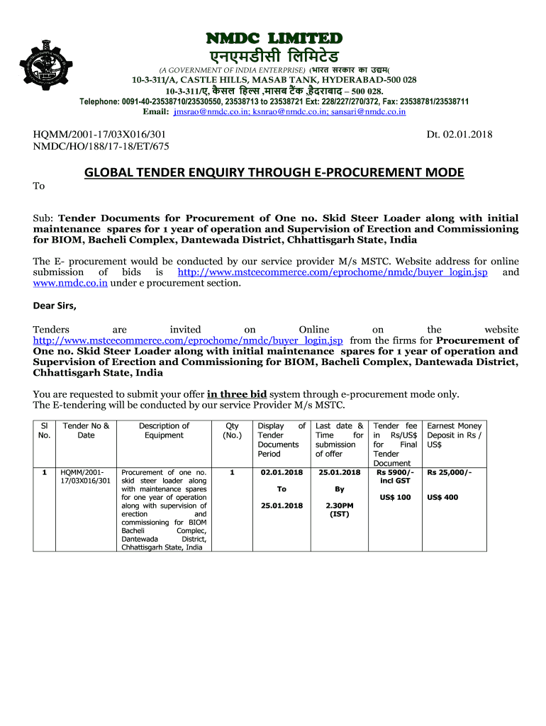 MDC LIMITED (A GOVERNMENT OF INDIA ENTERPRISE) ()103311/A, CASTLE HILLS, MASAI TANK, HYDERABAD500 028 103311/,,, 500 028. Telephone: 00914023538710/23530550, 23538713 to 23538721 Ext: 228/227/270/372,