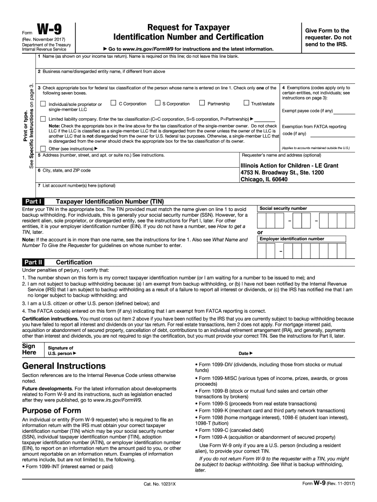 Get the free Form W-9 (Rev. November 2017) - Illinois Action for Children