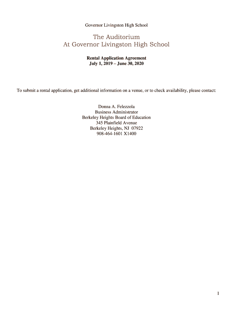 Governor Livingston High Schools Auditorium At Governor Livingston High School Rental Application Agreement July 1, 2019, June 30, 2020To submit a rental application, get additional information on
