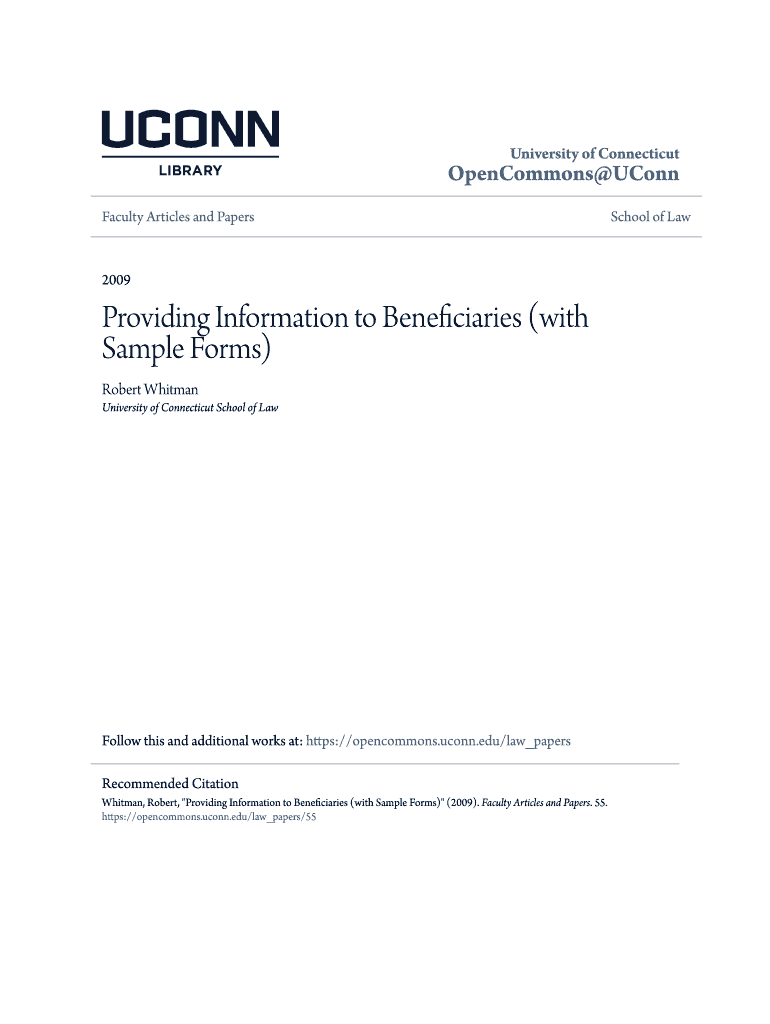 University of ConnecticutOpenCommons Conn Faculty Articles and Papers2009Providing Information to Beneficiaries (with Sample Forms) Robert Whitman University of Connecticut School of Follow this and