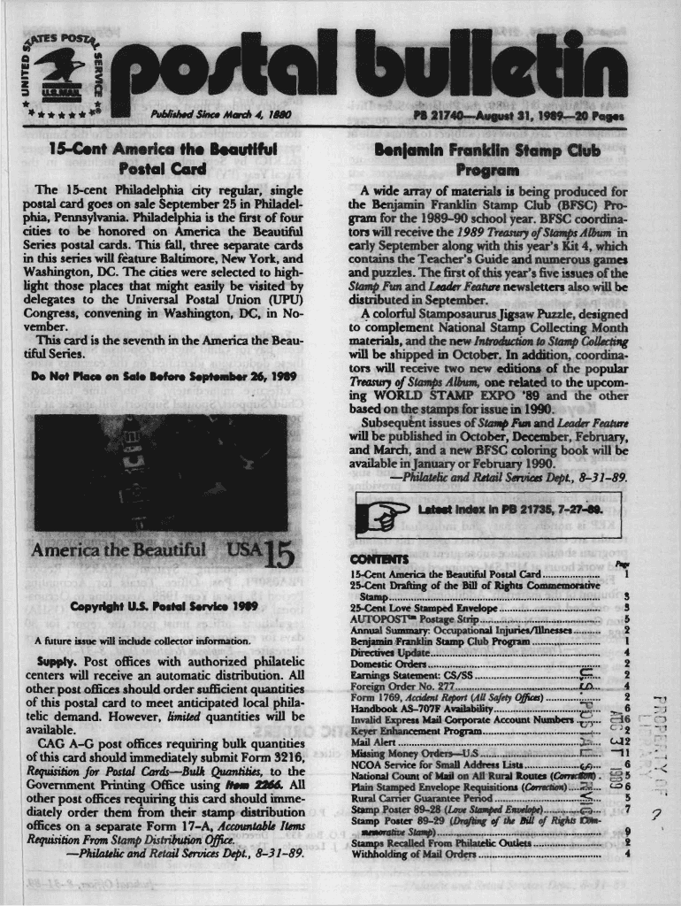 I PO/to bulletin********Hip 21740August 31, 198920 PagetPublished Since March 4, 188015Cent America the Beautiful