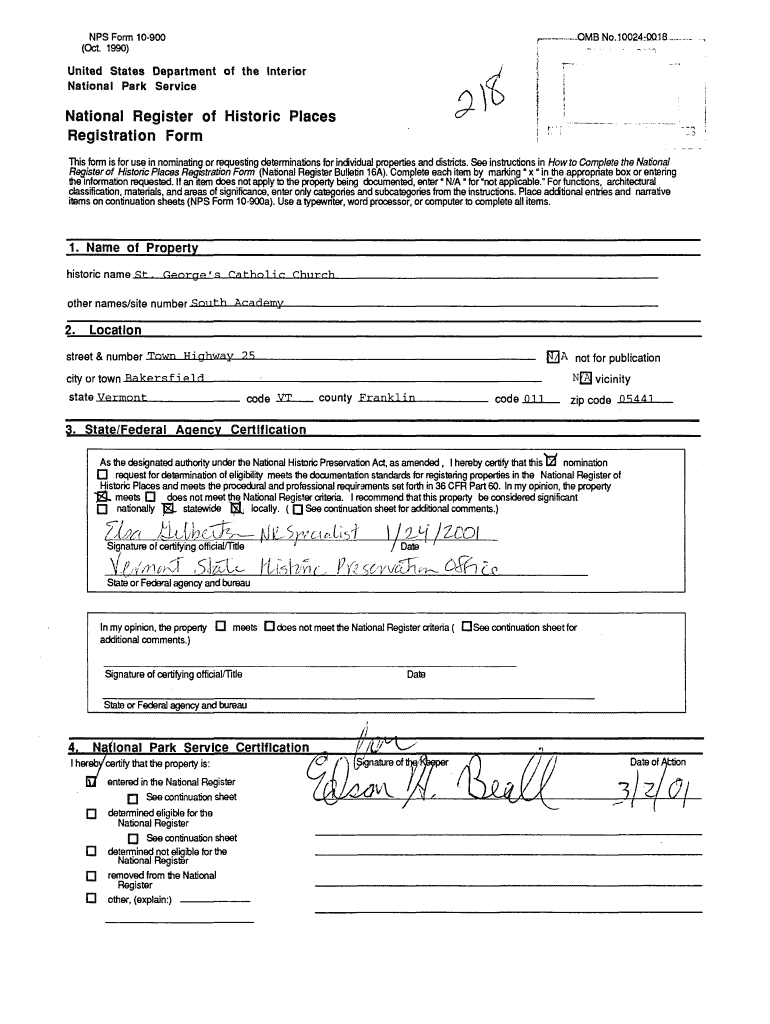 0 MB No. 10024QQ1S. , NPS Form 10900 (Oct. 1990)United States Department of the Interior National Park ServiceNational Register of Historic Places Registration Form this form is for use in nominating