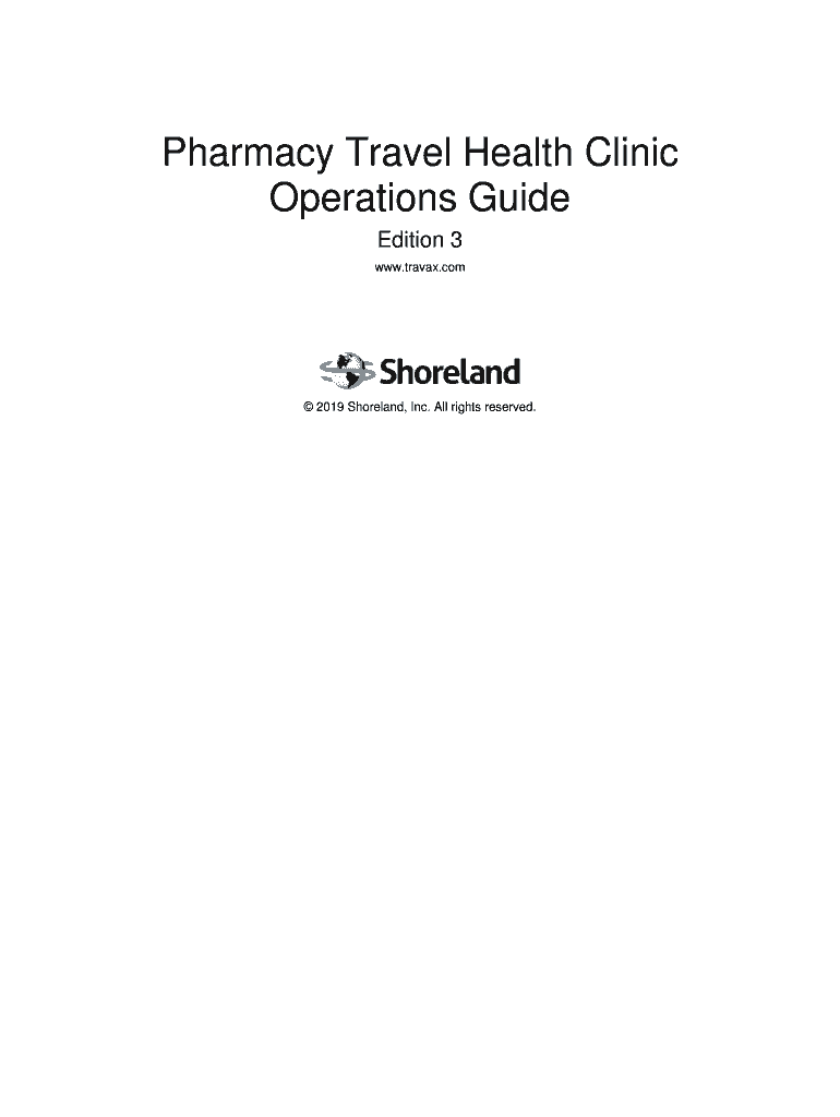 Pharmacy Travel Health Clinic Operations Guide Edition 3 www.travax.com 2019 Shore land, Inc. All rights reserved. Pharmacy Travel Health Clinic Operations Guide page 2INTRODUCTION The Pharmacy Travel