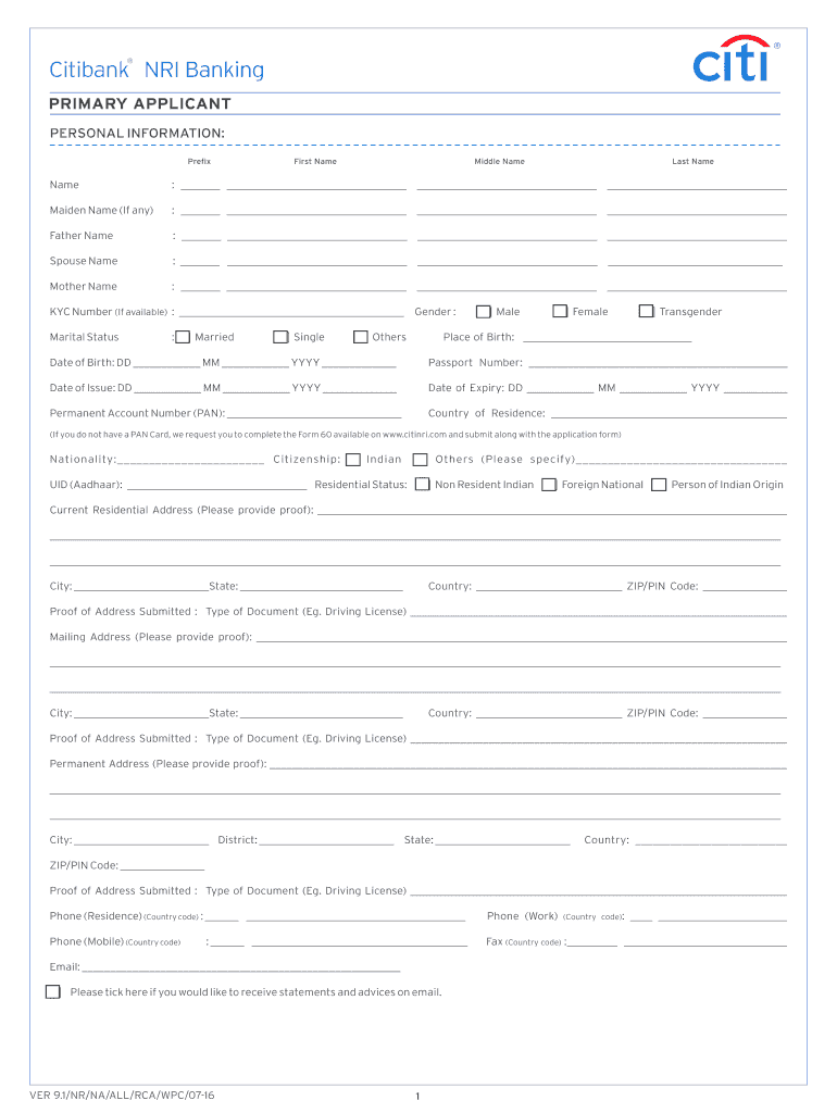 Citibank Non-Resident Indian Account Opening ApplicationThank you for your interest in opening a Non-Resident Indian Account with Citibank, N.A., India. To allow us to open your account as quickly