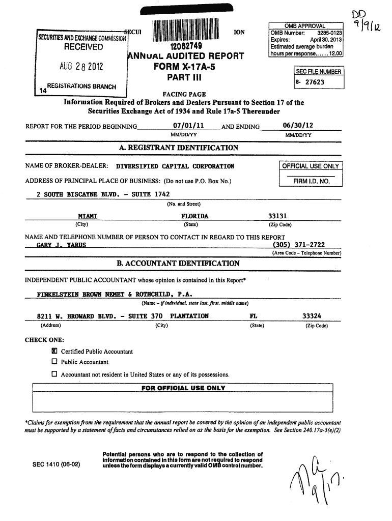 AND EXCHANGEfiiiJRrTlESlOiN0MBSJICUINumber3235012312062749RECEI/EDEstimatedNN UAL AUDITEDFORMAUG 282012REPORThours per response12.00SEC FILE NUMBERIII276238BRANCH14REGISTRATIONSburdenaverageX17A5PART2013April30ExpiresFACING