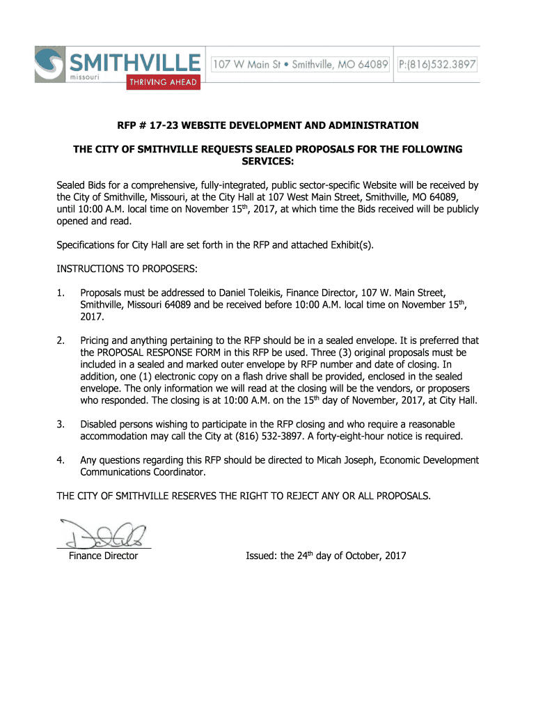 Get the free rfp # 17-23 website development and administration ... - City of Smithville
