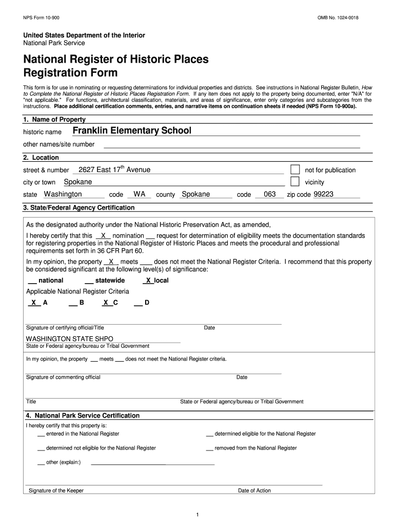Get the free NPS Form 10 900 OMB No. 1024 0018 - Historic Spokane - properties historicspokane