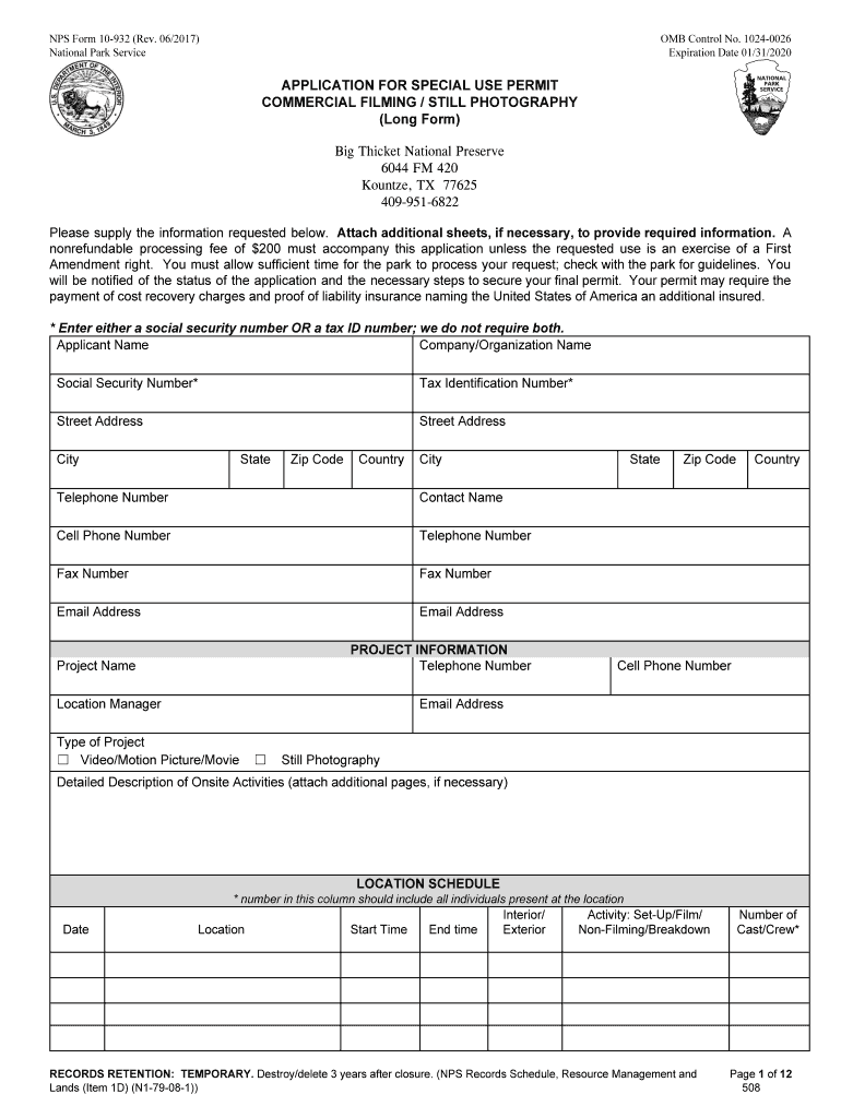 Individuals or organizations who wish to engage in activities or temporary land use that require special permission are required to file a special use permit form.