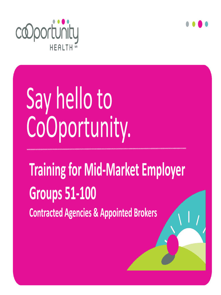 Say hello to Opportunity. Training for Mid-market Employer Groups 51100 Contracted Agencies & Appointed BrokersPresenters Chuck Sega Large Group Sales Manager chuck. Sega coOportunityhealth.com Kathy