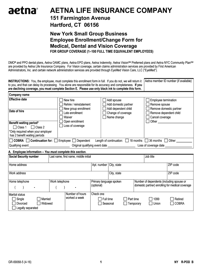 Get the free New York Small Group Employee Enrollment/Change Form - 1-100 employees - Aetna. New ...