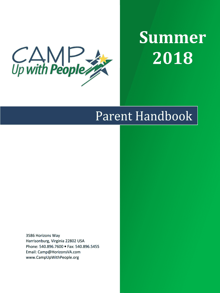 Summer 2018 Parent Handbook3586 Horizons Way Harrisonburg, Virginia 22802 USA Phone: 540.896.7600 Fax: 540.896.5455 Email: Camp HorizonsVA.com www.CampUpWithPeople.org3586 Horizons Way Harrisonburg,
