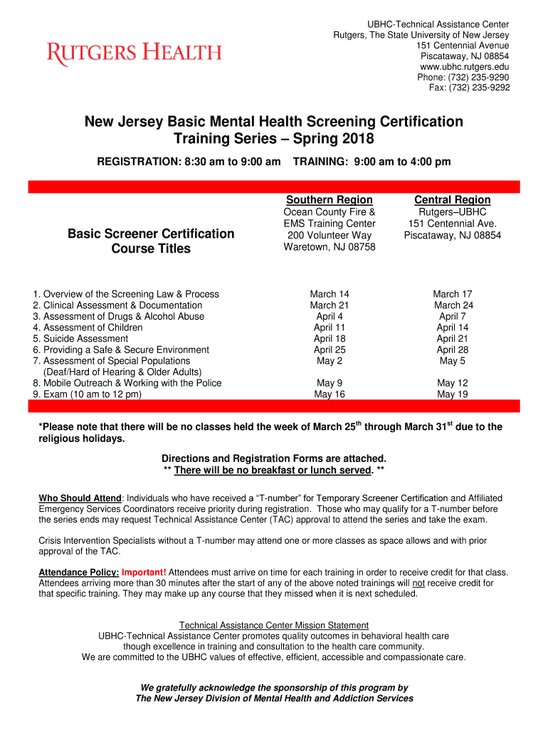 Biotechnical Assistance Center Rutgers, The State University of New Jersey 151 Centennial Avenue Piscataway, NJ 08854 www.ubhc.rutgers.edu Phone: (732) 2359290 Fax: (732) 2359292New Jersey Basic Mental