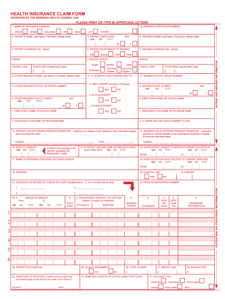 Get the free health insurance claim form approved by the bermuda health council ...