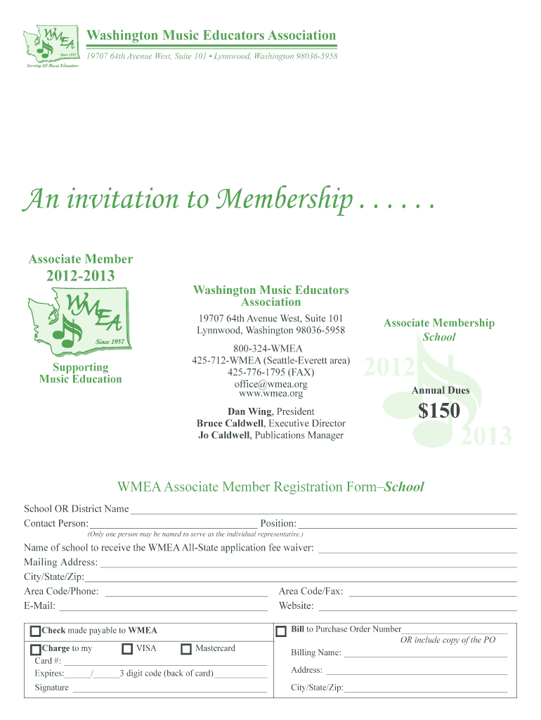 Washington Music Educators Association 19707 64th Avenue West, Suite 101 Lynnwood, Washington 980365958An invitation to Membership. . . . . . Associate Member20122013Washington Music Educators Association