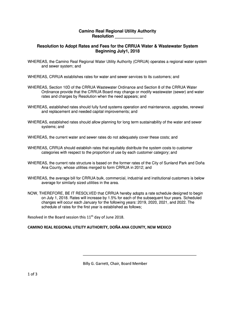 Resolution to Adopt Rates and Fees for the CR RUA Water & Wastewater System