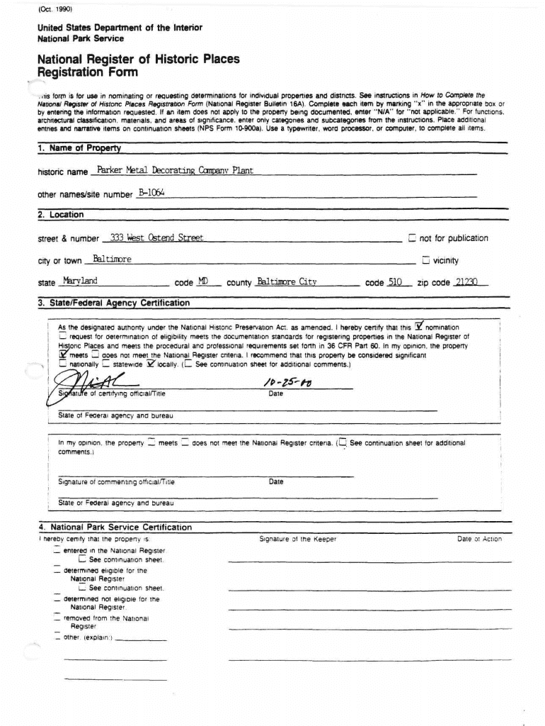 (Oct. 1990)United States Department of the Interior National Park ServiceNational Register of Historic Places Registration Fond. 1is Loren is for use in nominating or requesting determinations for