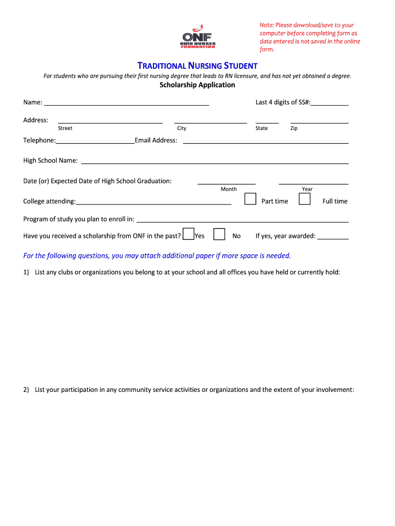 form. TRADITIONAL NURSING STUDENT