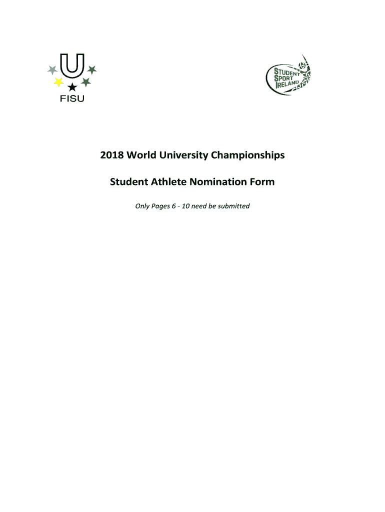 2018 World University Championships Student Athlete Nomination Form Only Pages 6 10 need to be submitted2018 World University Championships Student Nomination Form Student Nomination Form, Registration