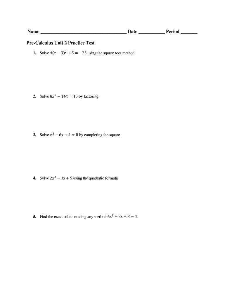 Get the free Name Date Period Pre-Calculus Unit 2 Practice Test