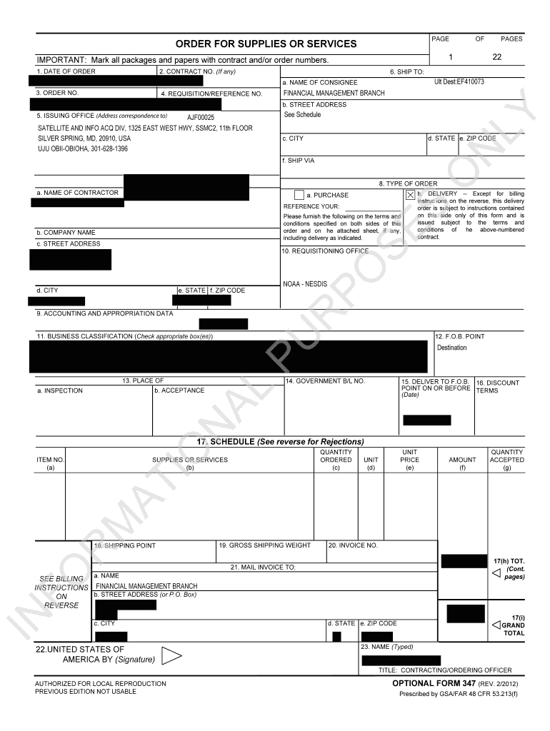 PREORDER FOR SUPPLIES OR SERVICES1IMPORTANT: Mark all packages and papers with contract and/or order numbers.