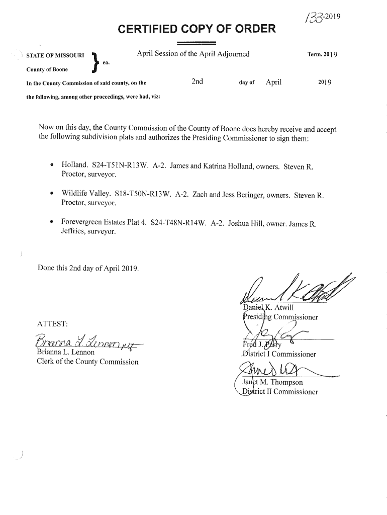 CERTIFIED COPY OF ORDER Aristate OF MTSSOURICounty of BooneSession of the April Adjourned/j4zoro Term. 20) “In the County Commission of said count on the2nddayofApril20lgthe following, among other