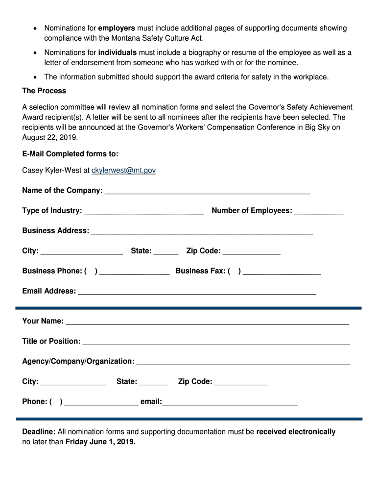 The purpose of form governors safety achievement is to promote safety awareness and recognize companies for their commitment to safety.
