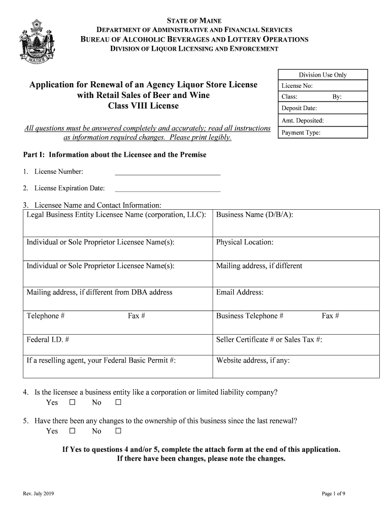DIVISION OF LIQUOR LICENSING AND ENFORCEMENTApplication for Renewal of an Agency