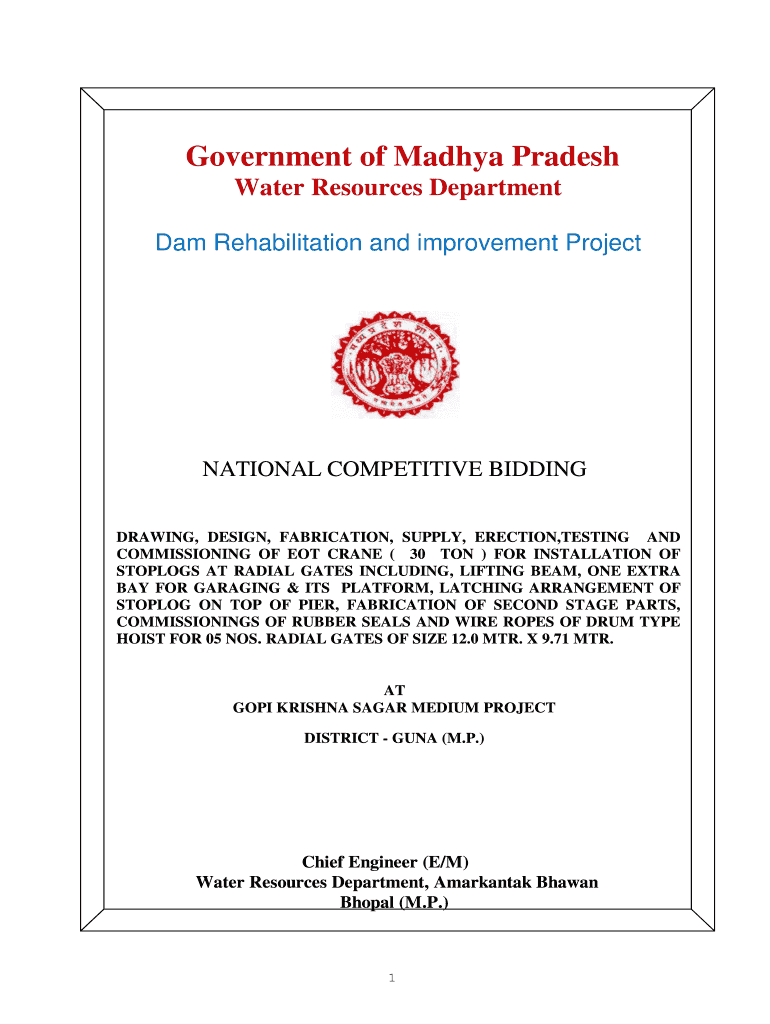 Government of Madhya Pradesh Water Resources Department Dam Rehabilitation and improvement ProjectNATIONAL COMPETITIVE BIDDING DRAWING, DESIGN, FABRICATION, SUPPLY, ERECTION, TESTING AND COMMISSIONING