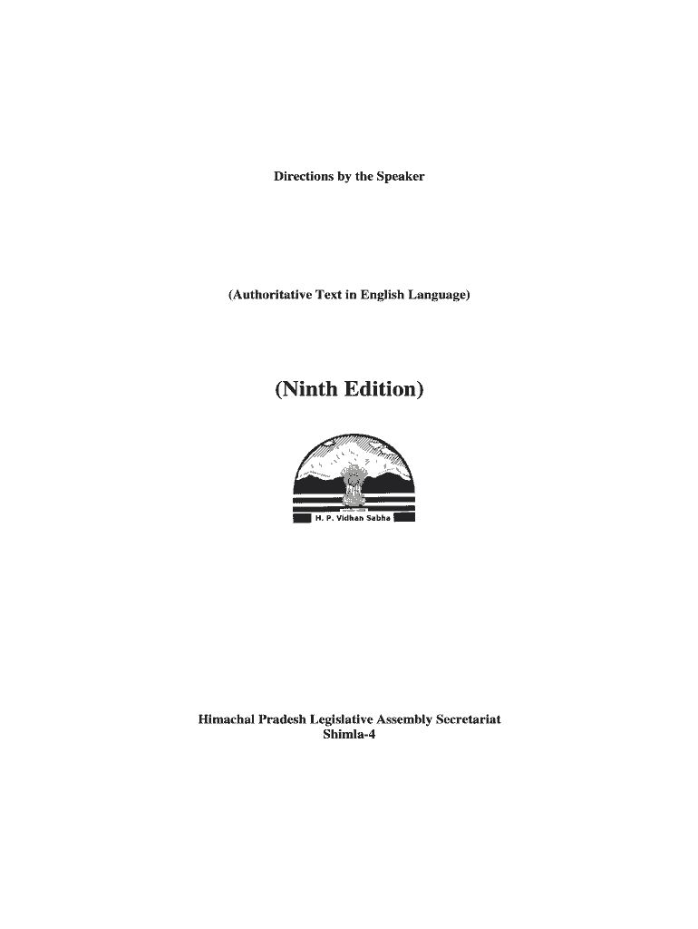 Directions by the Speaker(Authoritative Text in English Language)(Ninth Edition)Himachal Pradesh Legislative Assembly Secretariat