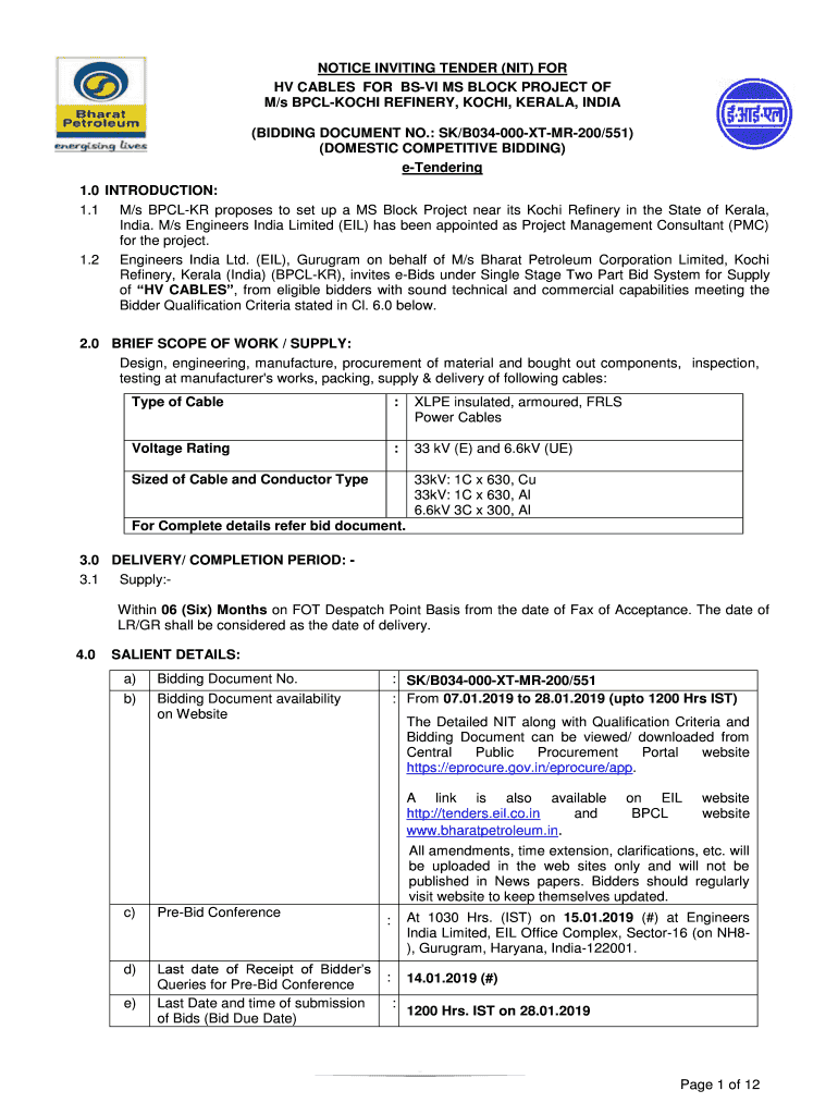 Get the free Page 1 of 12 NOTICE INVITING TENDER (NIT ... - Bharat Petroleum