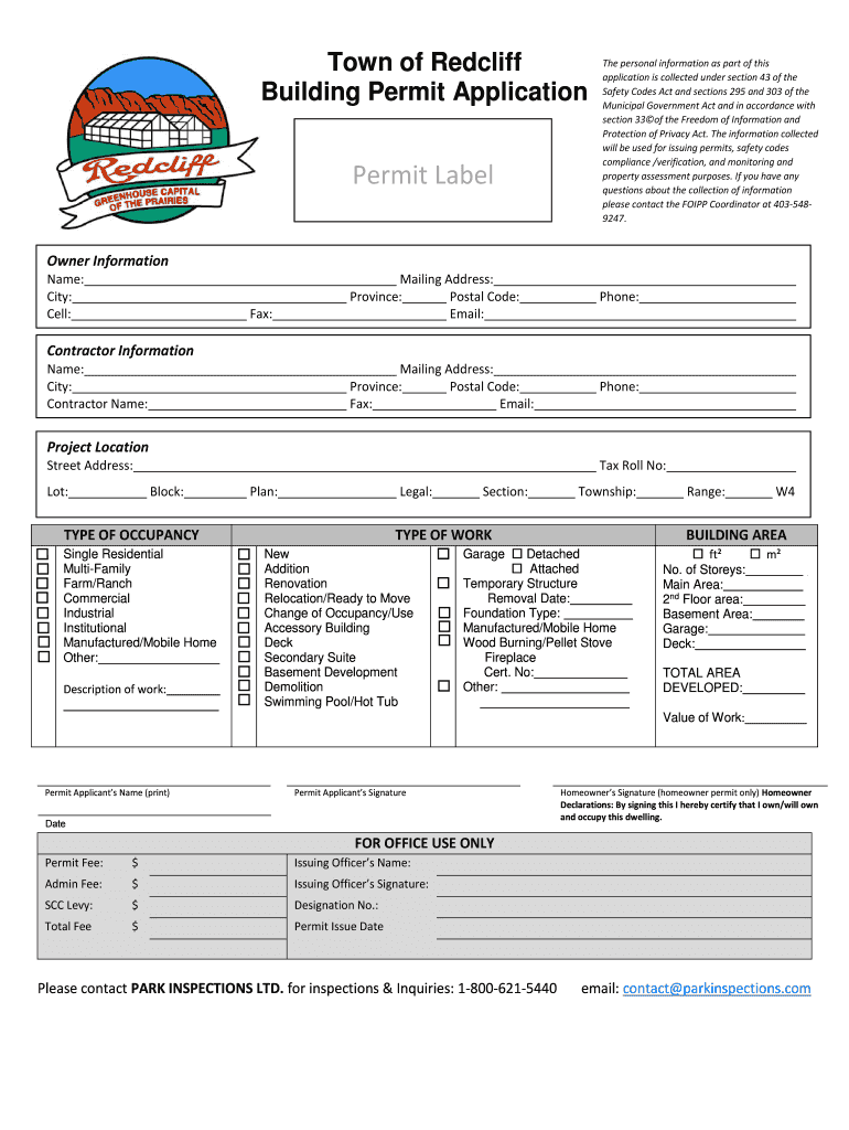 Get the free Building Permit Application - Town of Redcliff