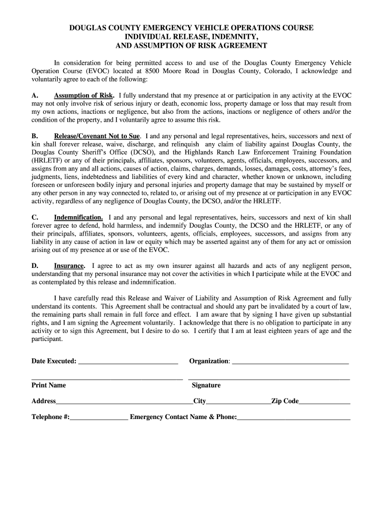 DOUGLAS COUNTY EMERGENCY VEHICLE OPERATIONS COURSE