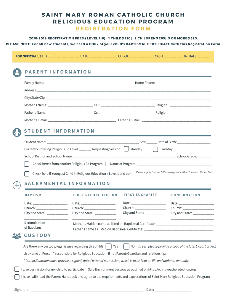 SAINT MARY ROMAN CATHOLIC CHURCH PREP 20182019 SCHOOL YEAR Look to Him and be radiant I encourage you to be renewed in the joy of that first encounter with Jesus. POPE FRANCIS2018 2019 PREP REGISTRATION