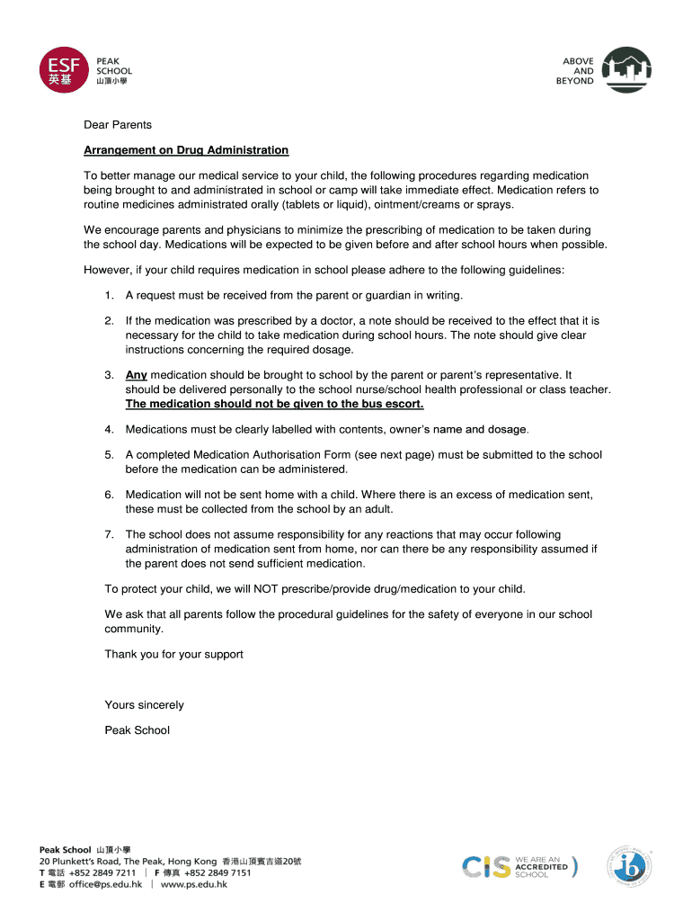 To better manage our medical service to your child, the following procedures regarding medication