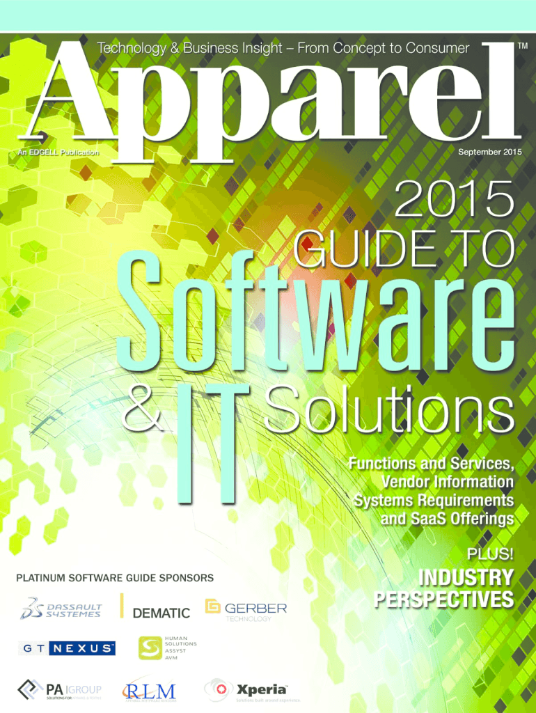 Apparels2015This special issue is a guide to suppliers of software and related IT solutions to the apparel marketplace, including vendor contact information, operating system requirements and a roundup