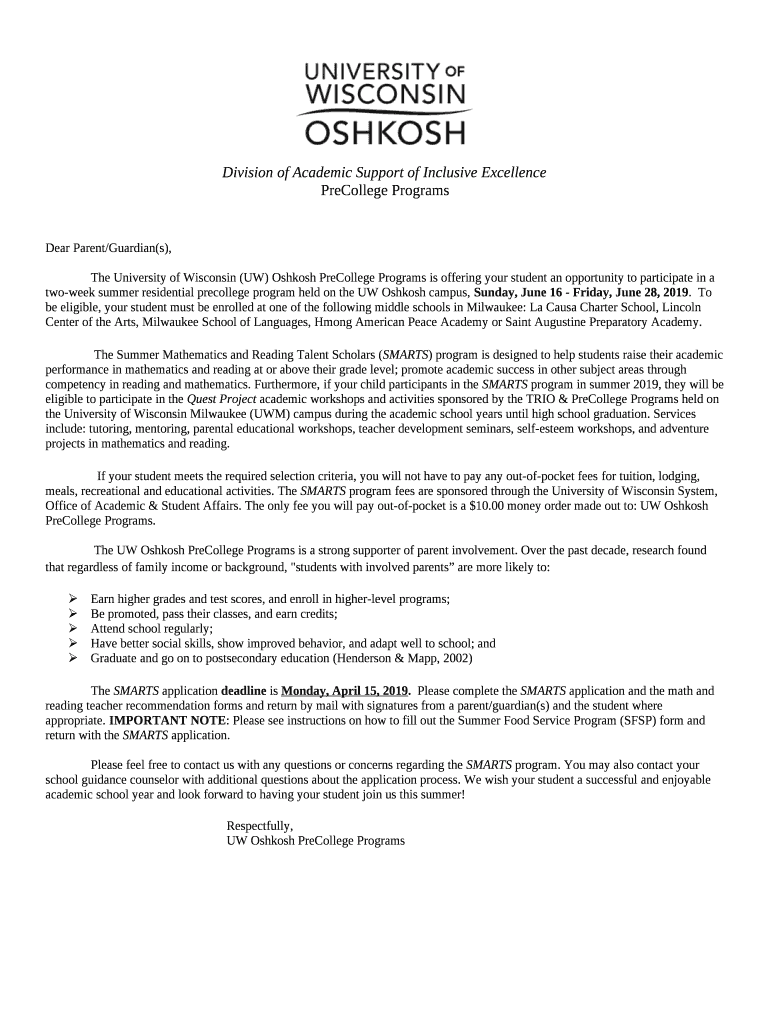 Summer Mathematics and Reading Talent Scholars (SMARTS) template instructions